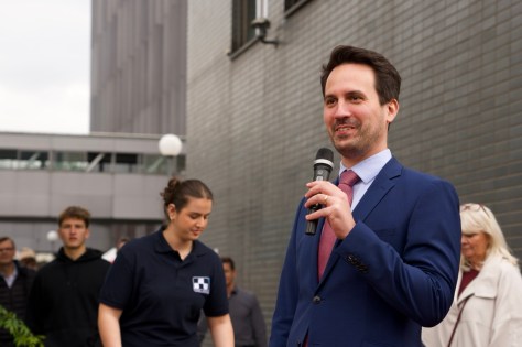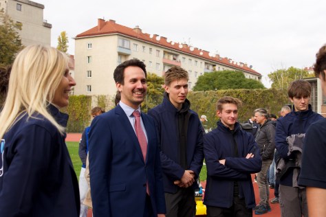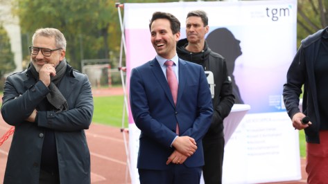 Bundesminister Christoph Wiederkehr; Wolfgang Kern, Abteilungsleiter für technische und gewerbliche höhere Schulen, Stefanie Hagmann-Schramm, Direktorin TGM;
